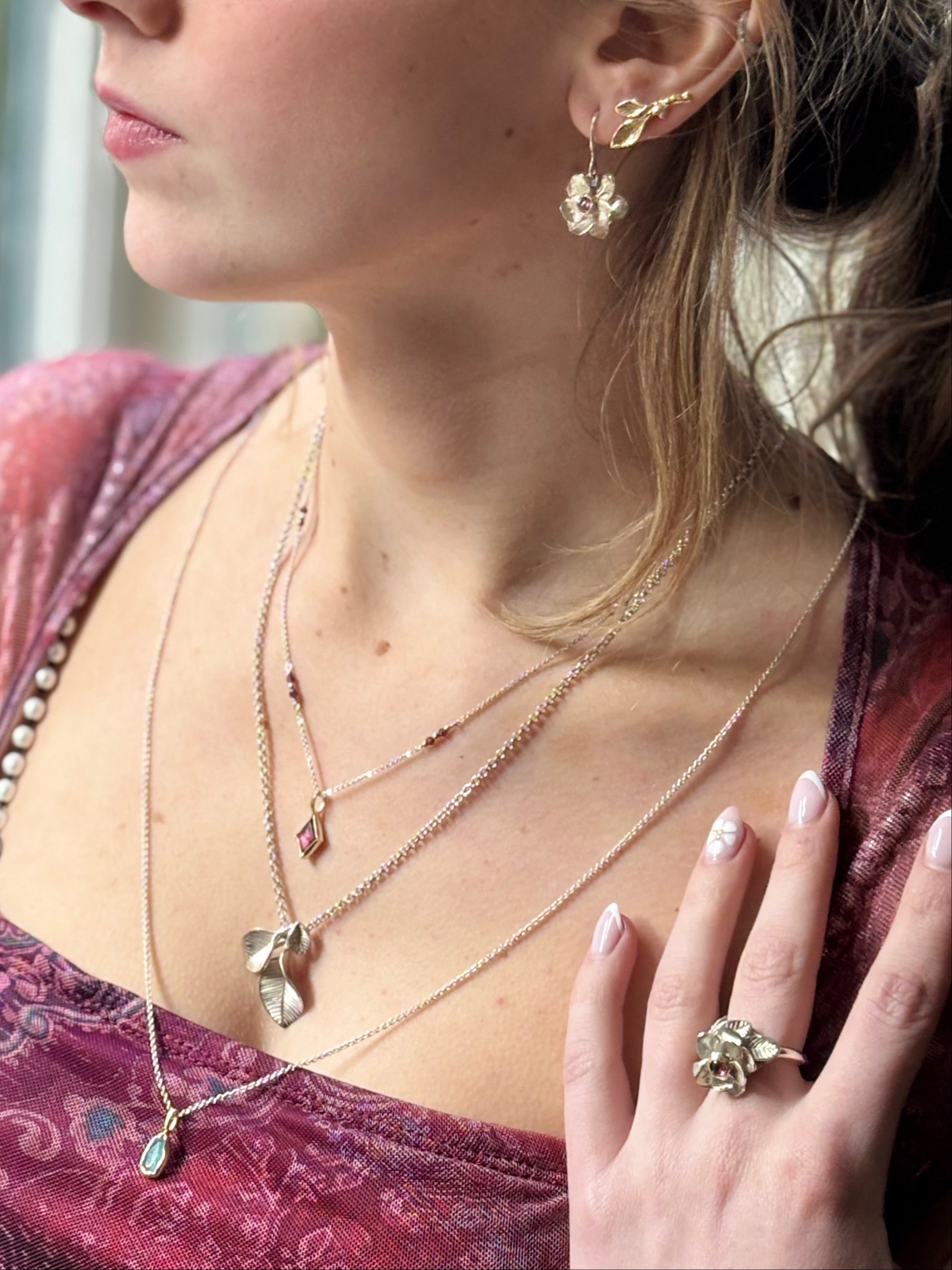Een sieradenlijn geïnspireerd op de natuur, met verfijnde variaties van blaadjes en...