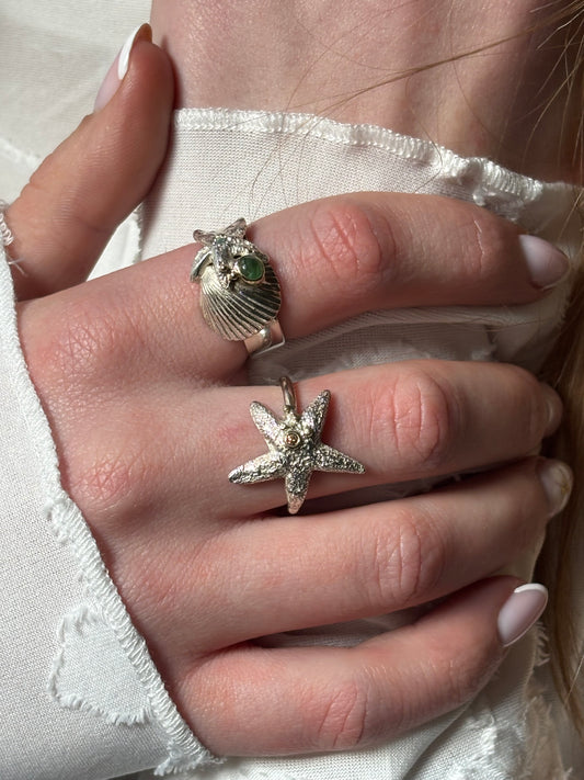 Silberner Seesternring mit goldenen Details