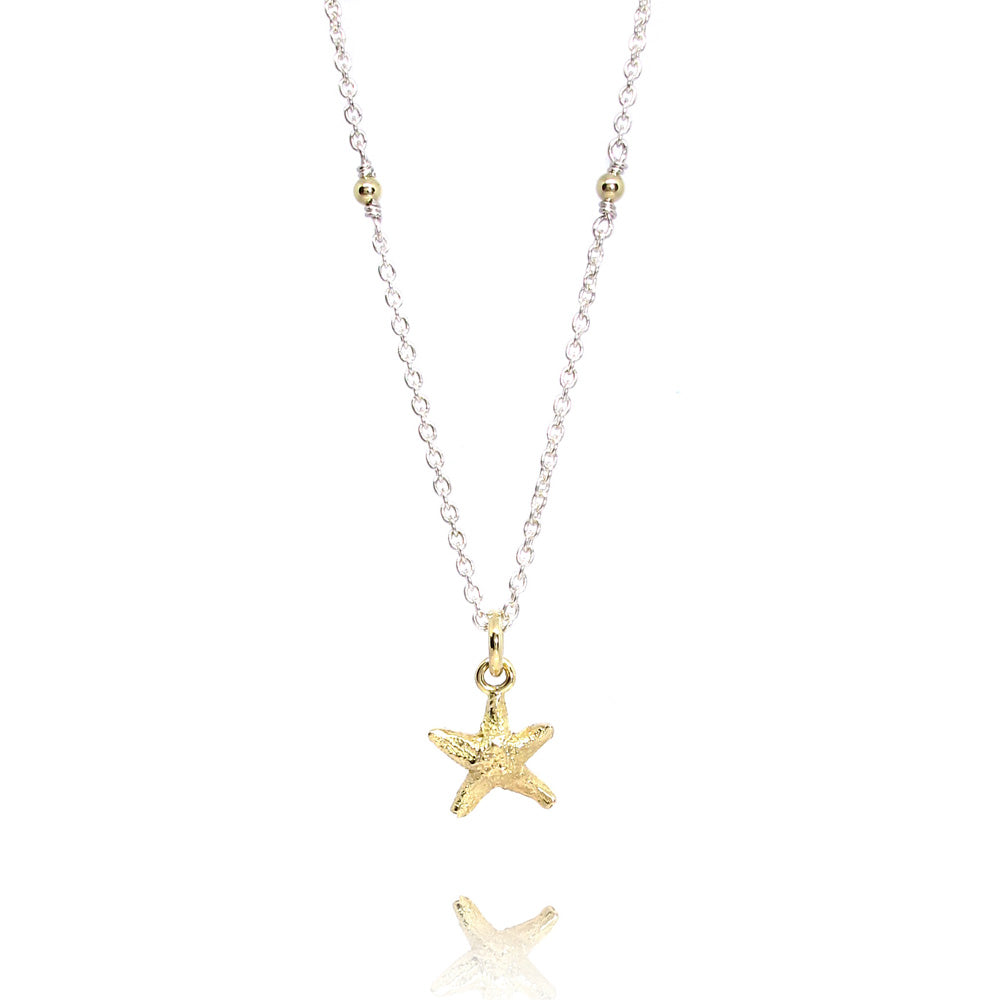 Wunderschöne Halskette mit goldenen Kugeln und Seesternen.
