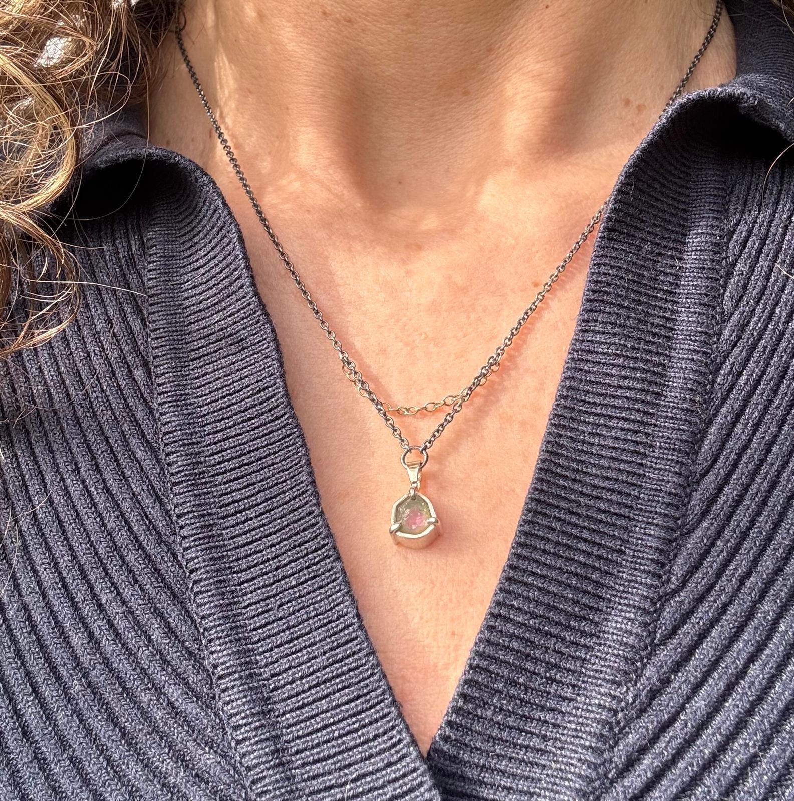 Halskette Silber mit Anhänger aus Wassermelonenturmalin