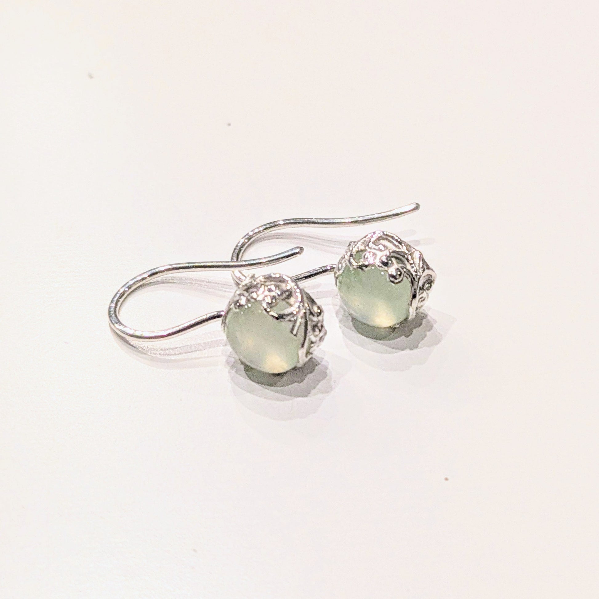 Wunderschöne, dezente Silberohrringe mit grünem, rundem Prehnitstein.