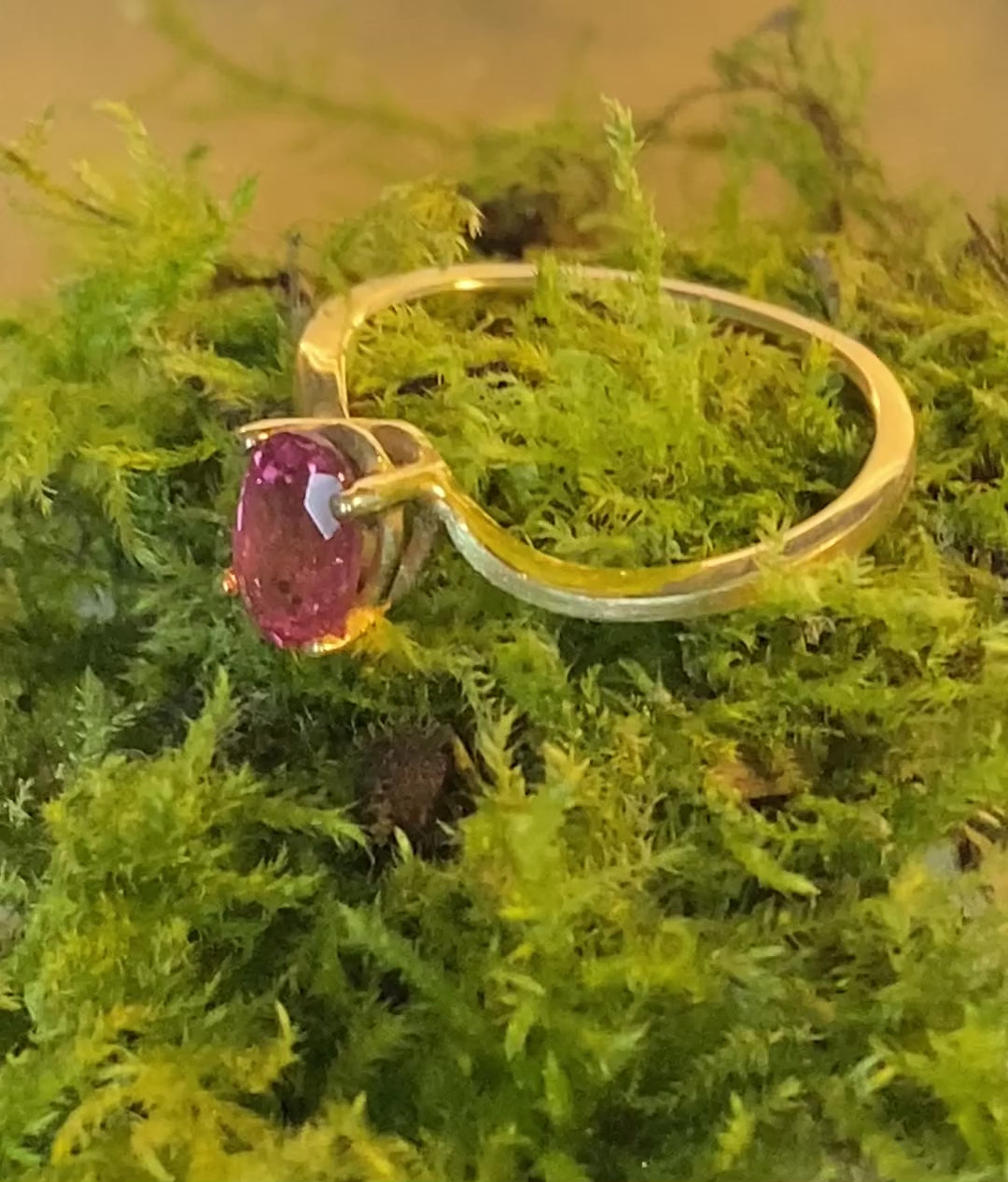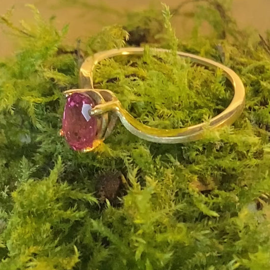 Feiner Verlobungsring aus 14 Karat Gelbgold. Besetzt mit einem besonderen rosa Turmalin. Ein einzigartiger Edelstein für einen einzigartigen Menschen.
