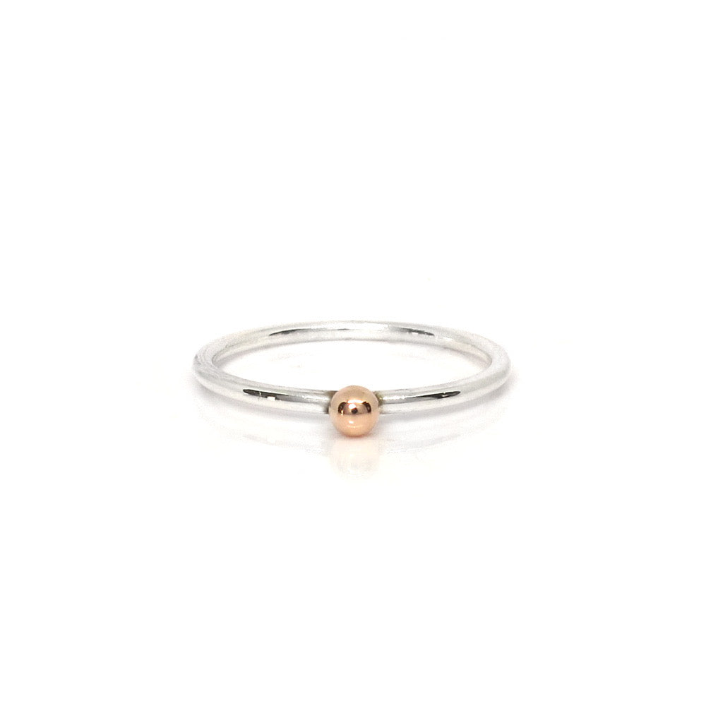Silberner Ansteckring mit einer 3 mm großen Kugel aus Rotgold. Ein schöner, schlichter Ring, der sich wunderbar mit anderen Ansteckringen kombinieren lässt.