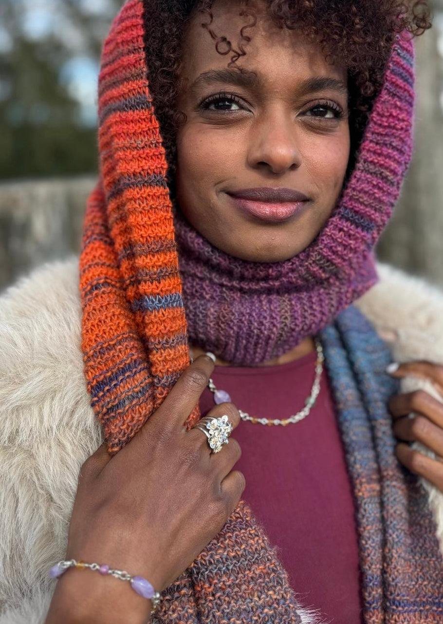 Boho-Armband aus Silber mit Edelsteinen wie Amethyst, Citrin und Turmalin. Für ein komplettes Set schauen Sie sich doch auch die passende Halskette an.