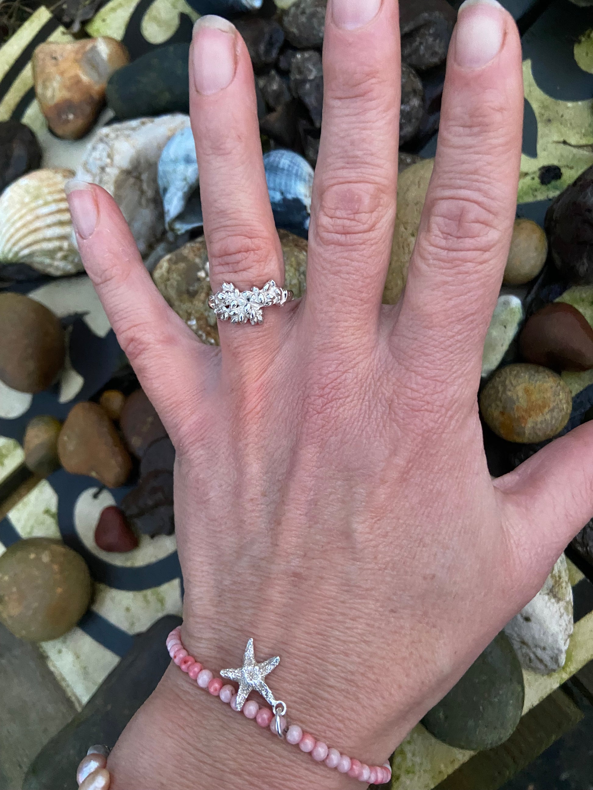 Silberring aus der Beachtreasures-Kollektion, inspiriert von den bezaubernden kleinen Pflanzen, die man in den Dünen von Egmond aan Zee findet. Neugierig auf die Entstehung? Klicken Sie hier.