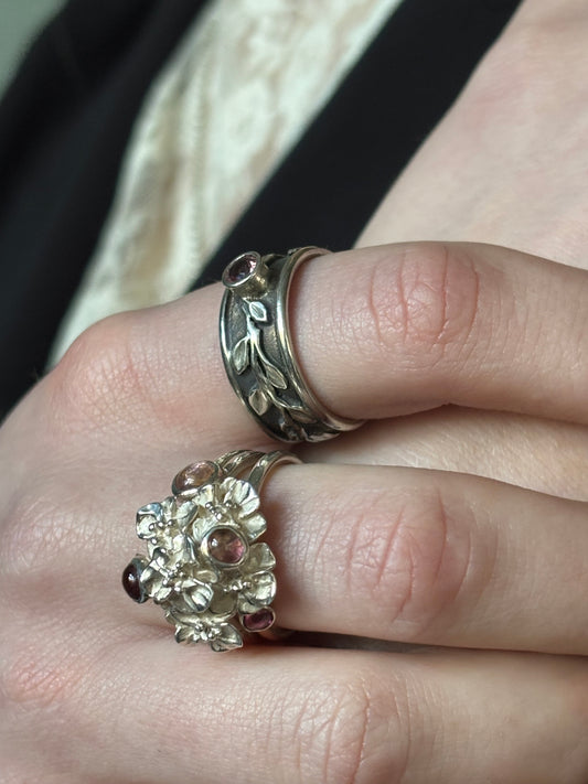 Stunning gold starfish ring with diamond and pink and green tourmaline