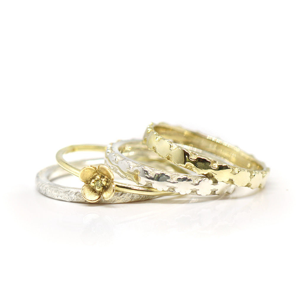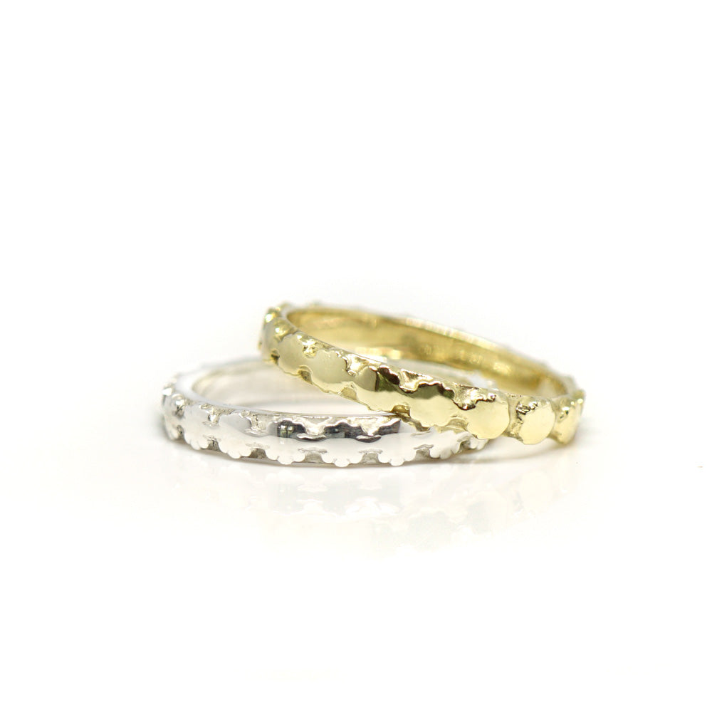 Golden ring narrow with stylized flowers. Nice to combine with the Dewdrop collection!