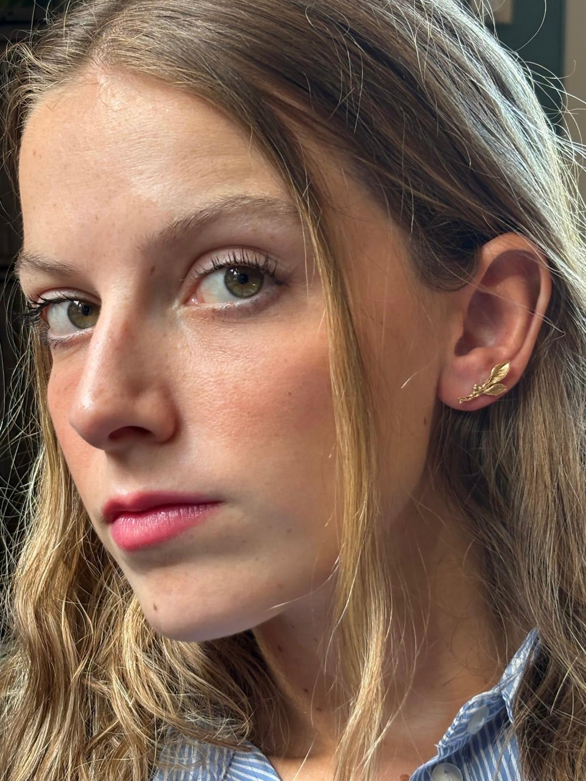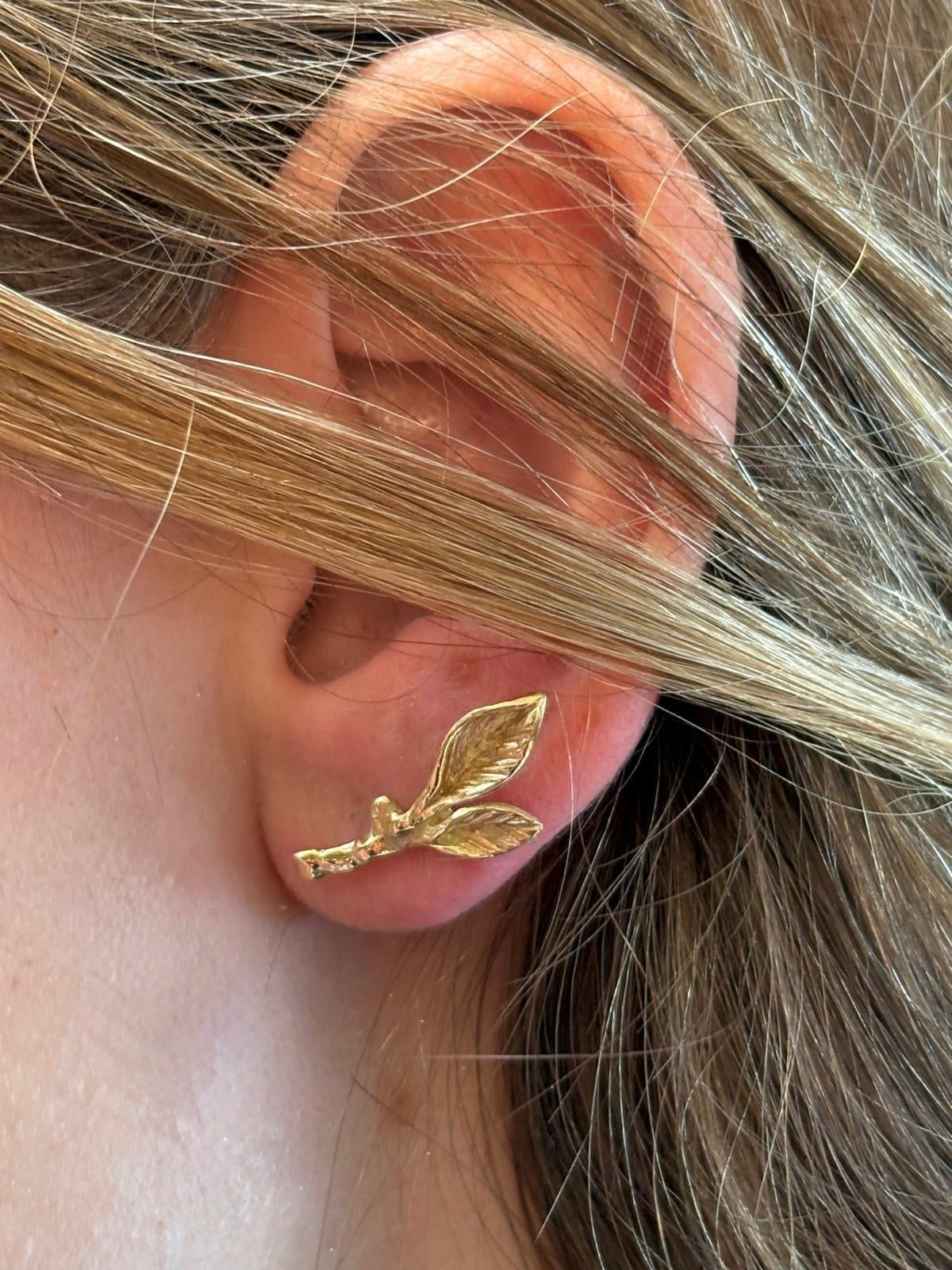 Very special these beautiful golden earrings in the shape of leaves with a branch that give your ear a sparkling look!