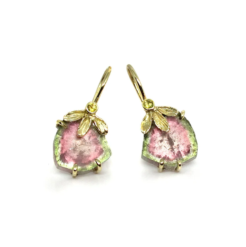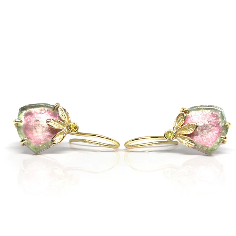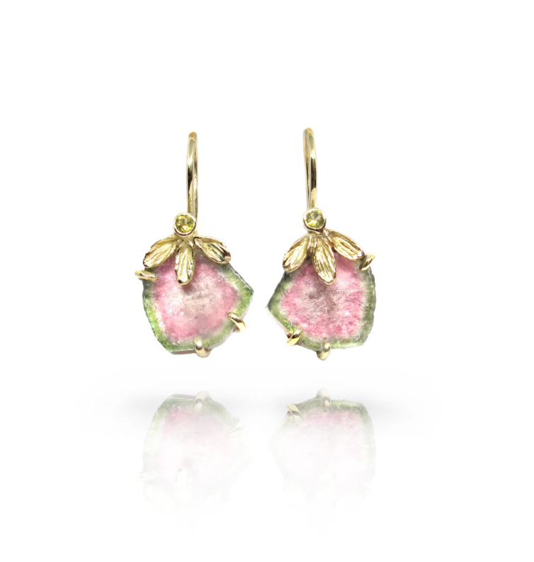 Gold earrings with watermelon tourmaline
