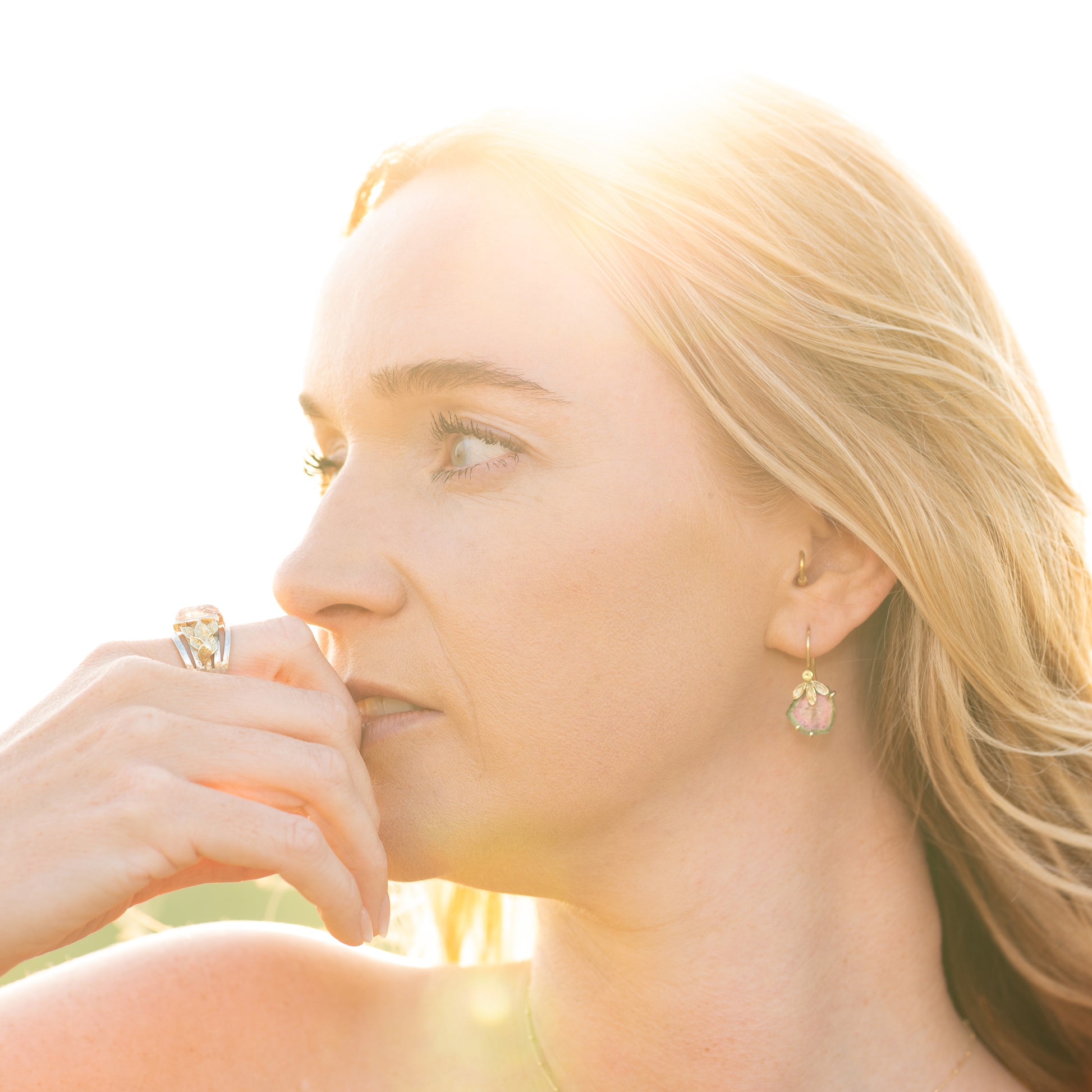 Gold earrings with watermelon tourmaline SOLD