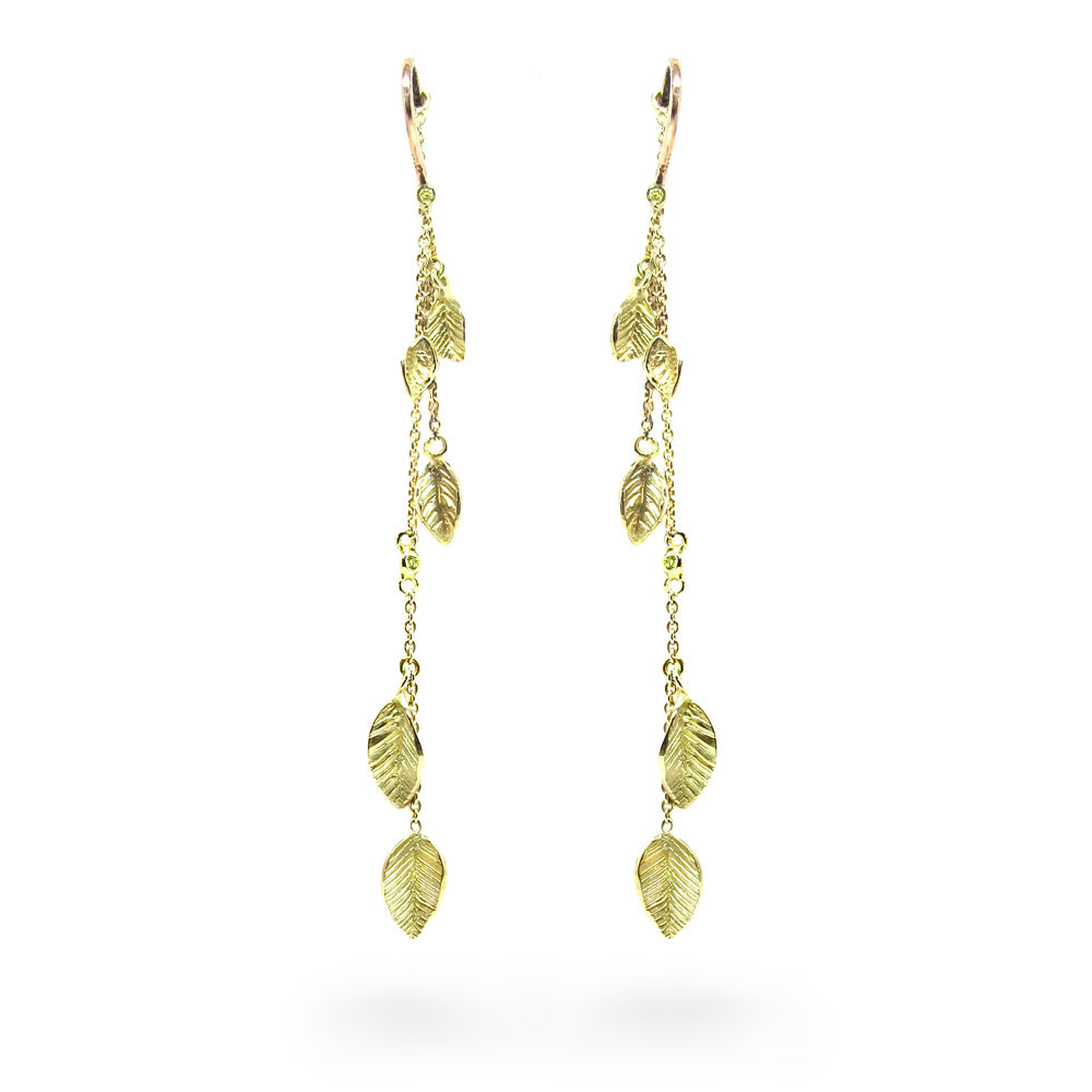 A celebration of gold, these beautiful earrings with golden leaves and yellow diamonds!