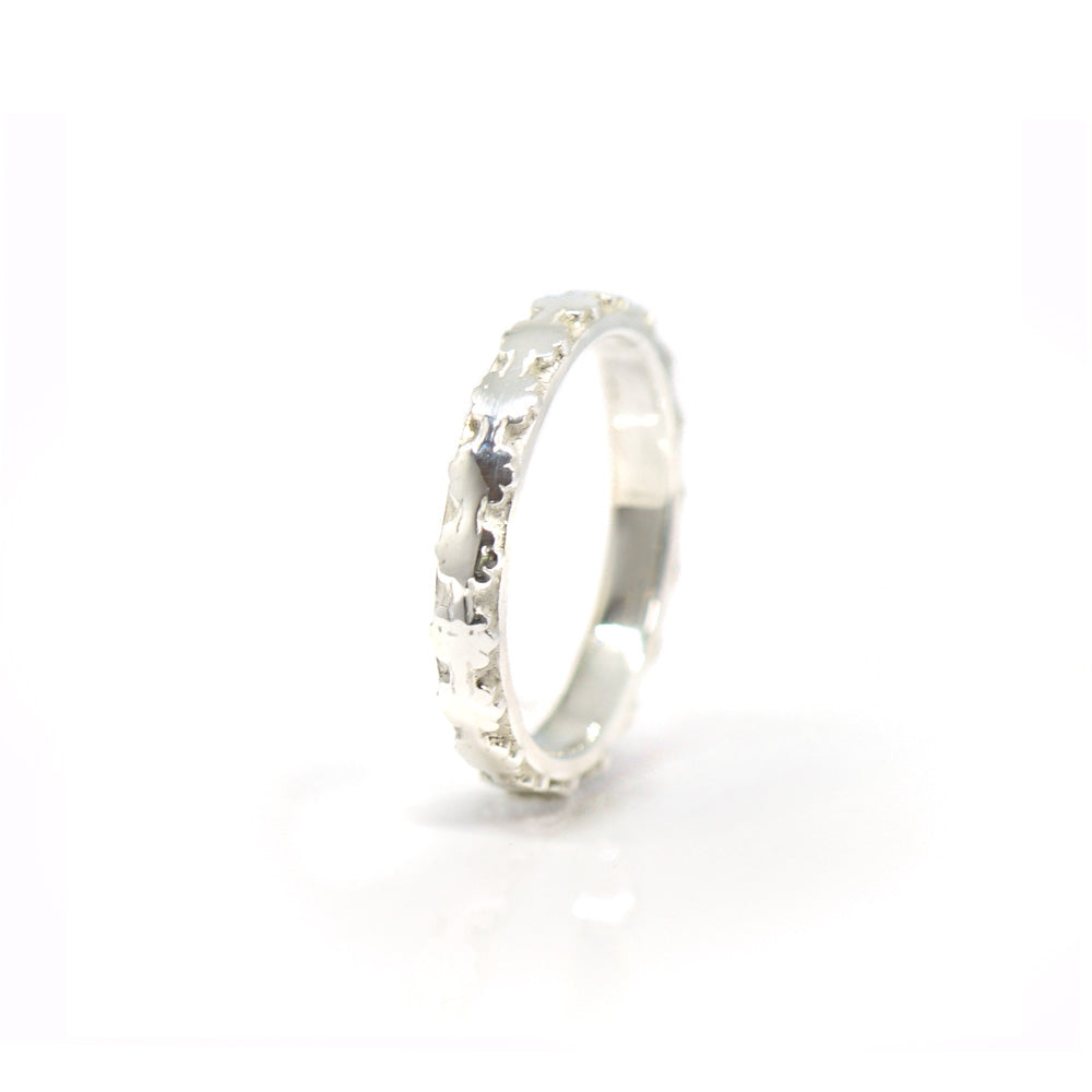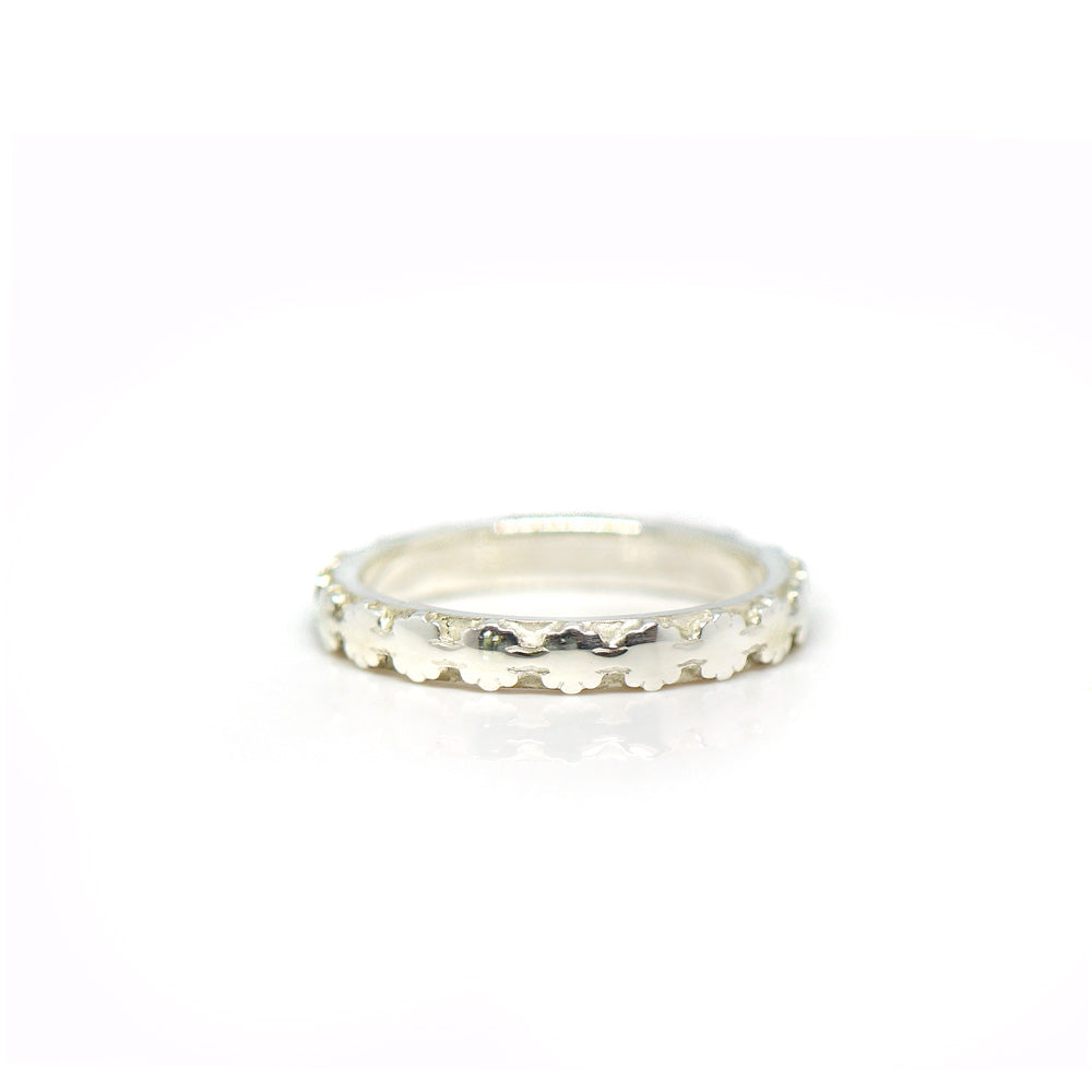 Silver sliding ring with stylized flower motifs. Nice to combine with other sliding rings from the Dewdrop collection!