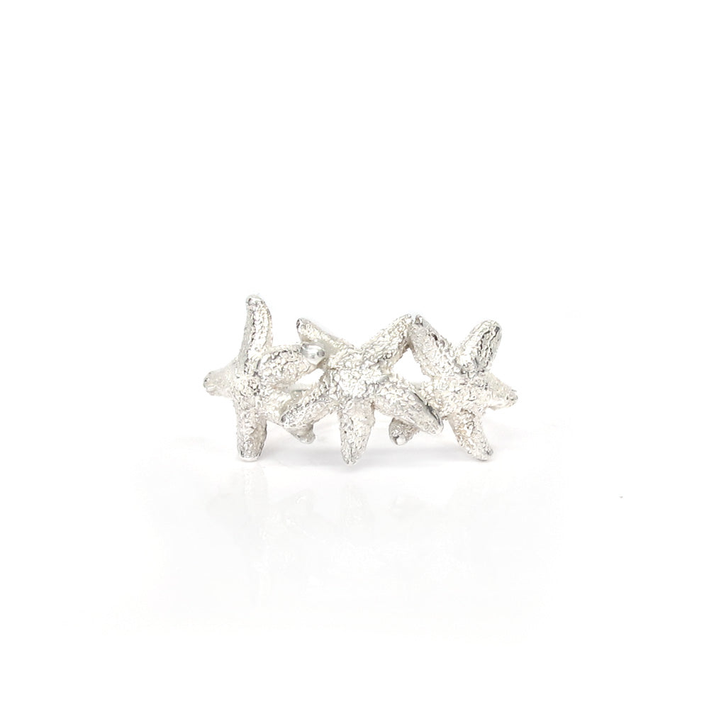 Summery silver ring with three starfish.