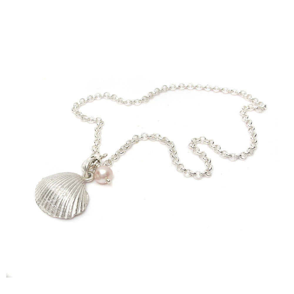 Enkelbandje beachtreasures zilver met parel en schelp.