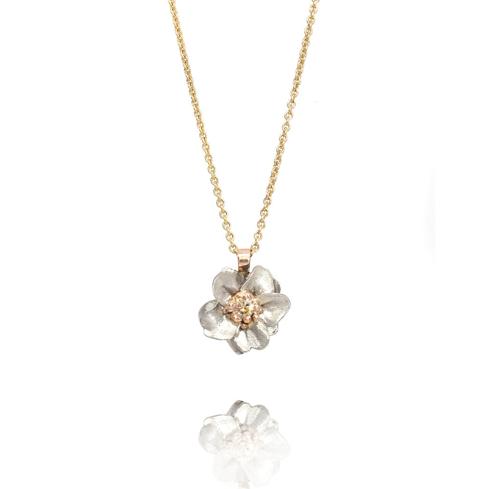 Gouden collier met bloem bezet met diamanten. Prachtige opvallende hanger!