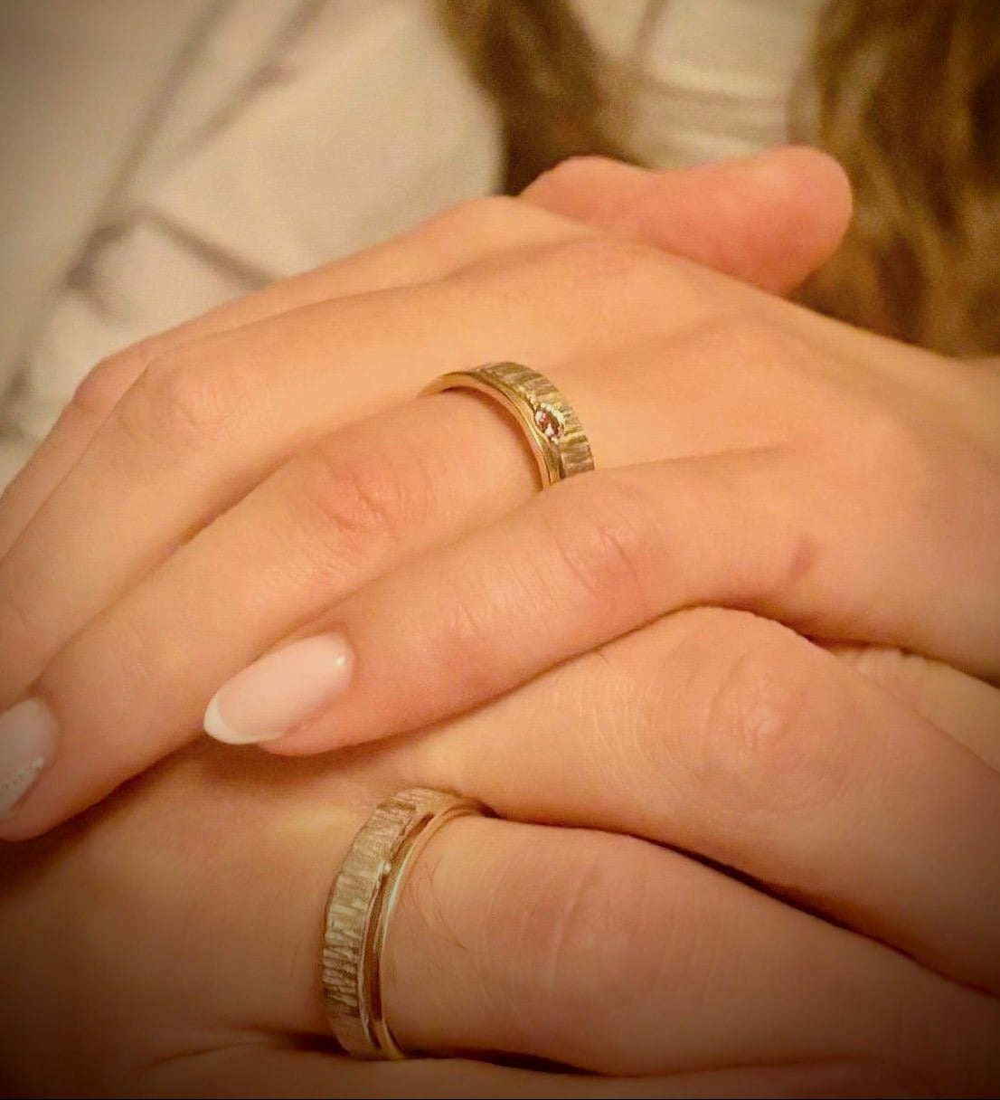 Trouwringen goud met zilver gehamerd
